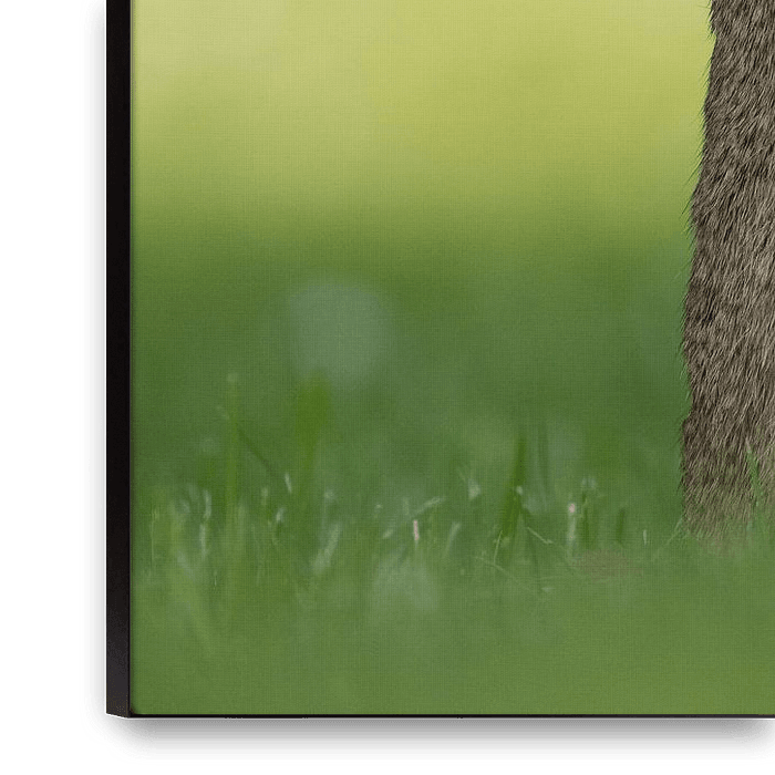 Bestelle dieses Bestsellers Blumen-Wandbild Eichhörnchen riecht Blume von Dick van Duijn als Reproduktion auf Leinwand, Alu-Dibond, als Poster, Fototapete oder Acrylglasbild.