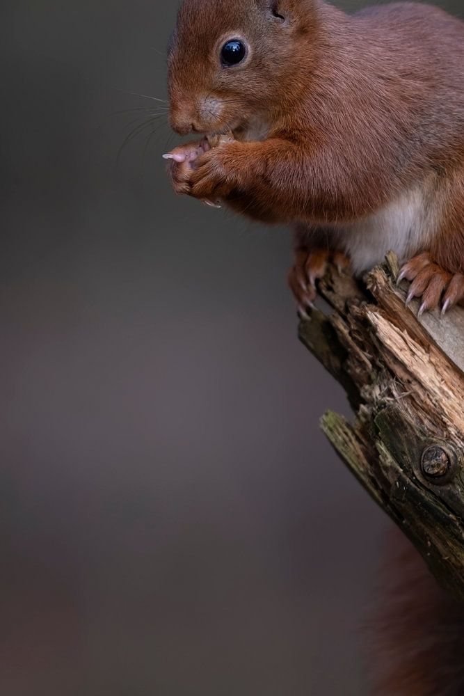 Das Eichhörnchen kam, um nach etwas Futter zu schnüffeln, und nachdem es etwas gefunden hatte, ging es los, um es zu essen.