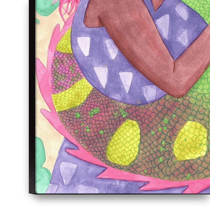 Bestelle diese Illustration Eidechse und Frau von Tamara Houtveen als Reproduktion auf Leinwand, Alu-Dibond, als Poster, Fototapete oder Acrylglasbild.