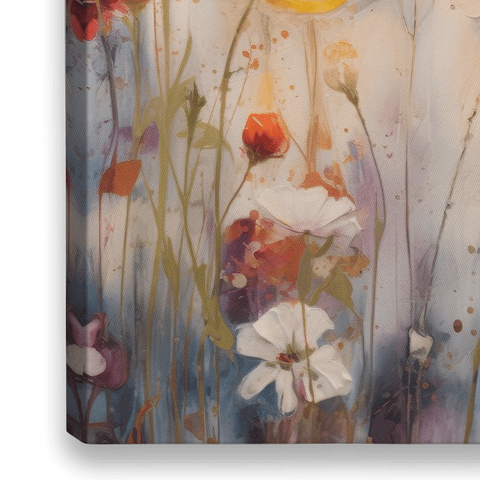 Ein Feld voller Blumen. Buntes, modernes und abstraktes Gemälde mit einer Sammlung von Blumen in allen Farben. Bringen Sie mit diesem Werk Fröhlichkeit in Ihr Zuhause!