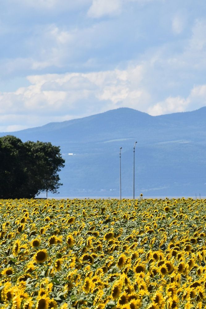 Über „Ein Gebiet mit blühenden Sonnenblumen“ von Claude Laprise