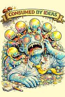 Ein Moment, in dem Inspiration überwältigend statt produktiv wird. Dieses Kunstwerk spiegelt geistige Übersättigung, Besessenheit und die Erschöpfung wider, die entsteht, wenn man zu viele Ideen gleichzeitig im Kopf hat. Verschmelzende Gedanken und überfüllte Formen suggerieren Kreativität, die sich selbst nährt.