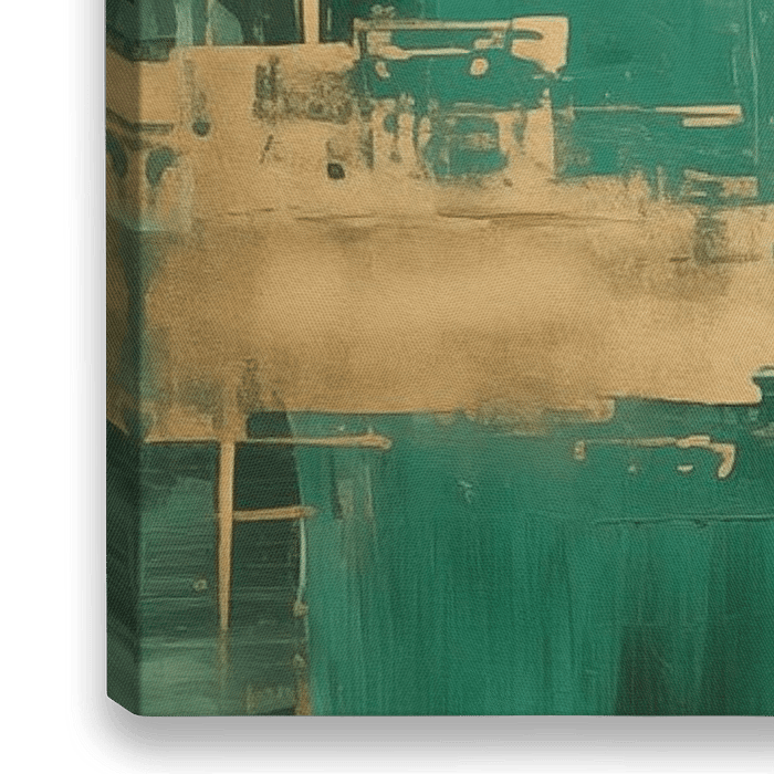 A Touch Of Gold #V ist ein digitales Gemälde im abstrakten expressionistischen Stil. Die Farbpalette besteht aus verschiedenen Schattierungen von Grün, Gold und Grau. Das Werk verleiht Ihrem Interieur einen modernen Look!