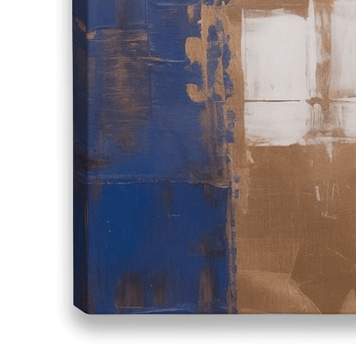 A Touch Of Gold #XVI ist ein digitales Gemälde im abstrakten expressionistischen Stil. Die Farbpalette besteht aus verschiedenen Schattierungen von großzügigem Blau, Rot und Gold. Das Werk verleiht Ihrem Interieur einen modernen, rustikalen Look!