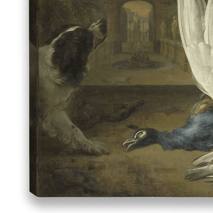 Bestelle Ein Hund mit einer toten Gans und einem Pfau, Jan Weenix als Reproduktion auf Leinwand, Alu-Dibond, als Poster, Fototapete oder Acrylglasbild.