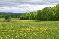 Bestelle das Foto Ein Löwenzahnfeld im Frühling von Claude Laprise als Kunstdruck auf Leinwand, Alu-Dibond, als Poster, Fototapete oder Acrylglasbild.