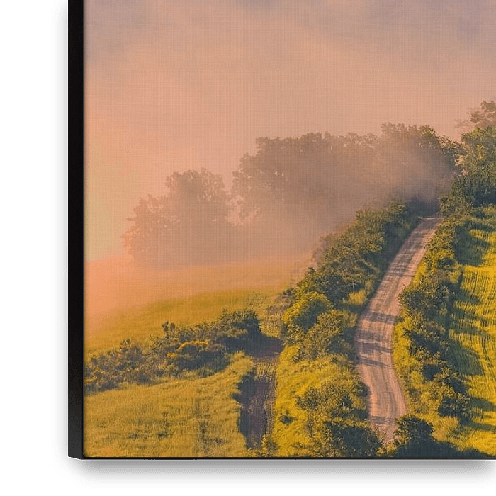 Ihre gewählte Kunst auf Leinwand, gespannt in einem Aluminiumrahmen. Schnell und einfach austauschbar für eine frische Ausstrahlung und ganz nach Ihren Wünschen.