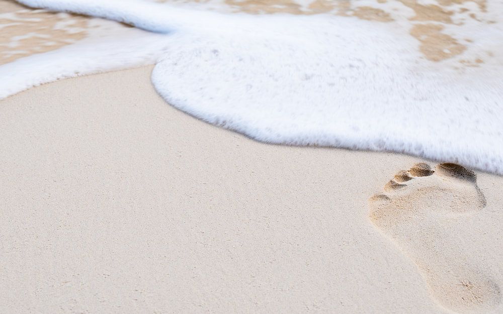 Fußabdruck an einem weißen Sandstrand auf den Turkish Islands (Turk & Caicos)