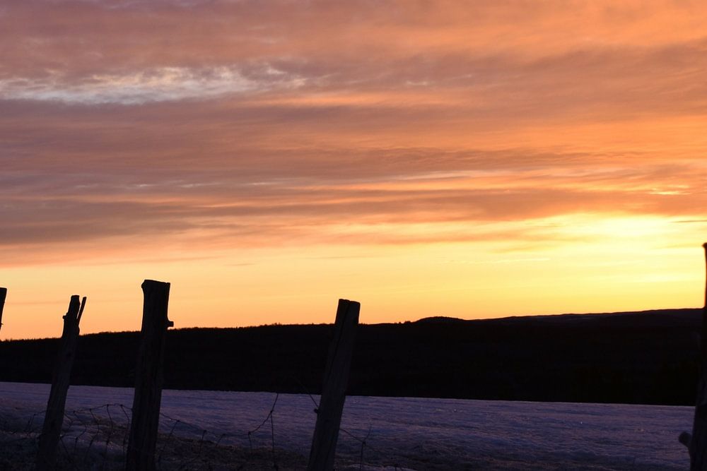 Ein Sonnenaufgang an einem kalten Morgen, Sainte-Apolline, Quebec, Kanada