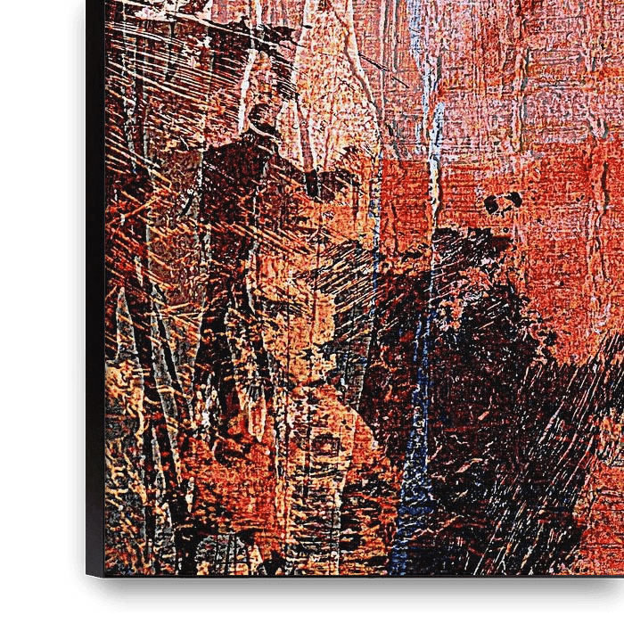 Ihre gewählte Kunst auf Leinwand, gespannt in einem Aluminiumrahmen. Schnell und einfach austauschbar für eine frische Ausstrahlung und ganz nach Ihren Wünschen.