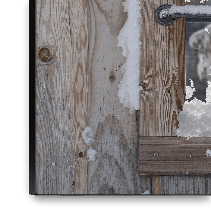 Bestelle das Foto Ein Winterholzfenster von Christa Kramer als Reproduktion auf Leinwand, Alu-Dibond, als Poster, Fototapete oder Acrylglasbild.