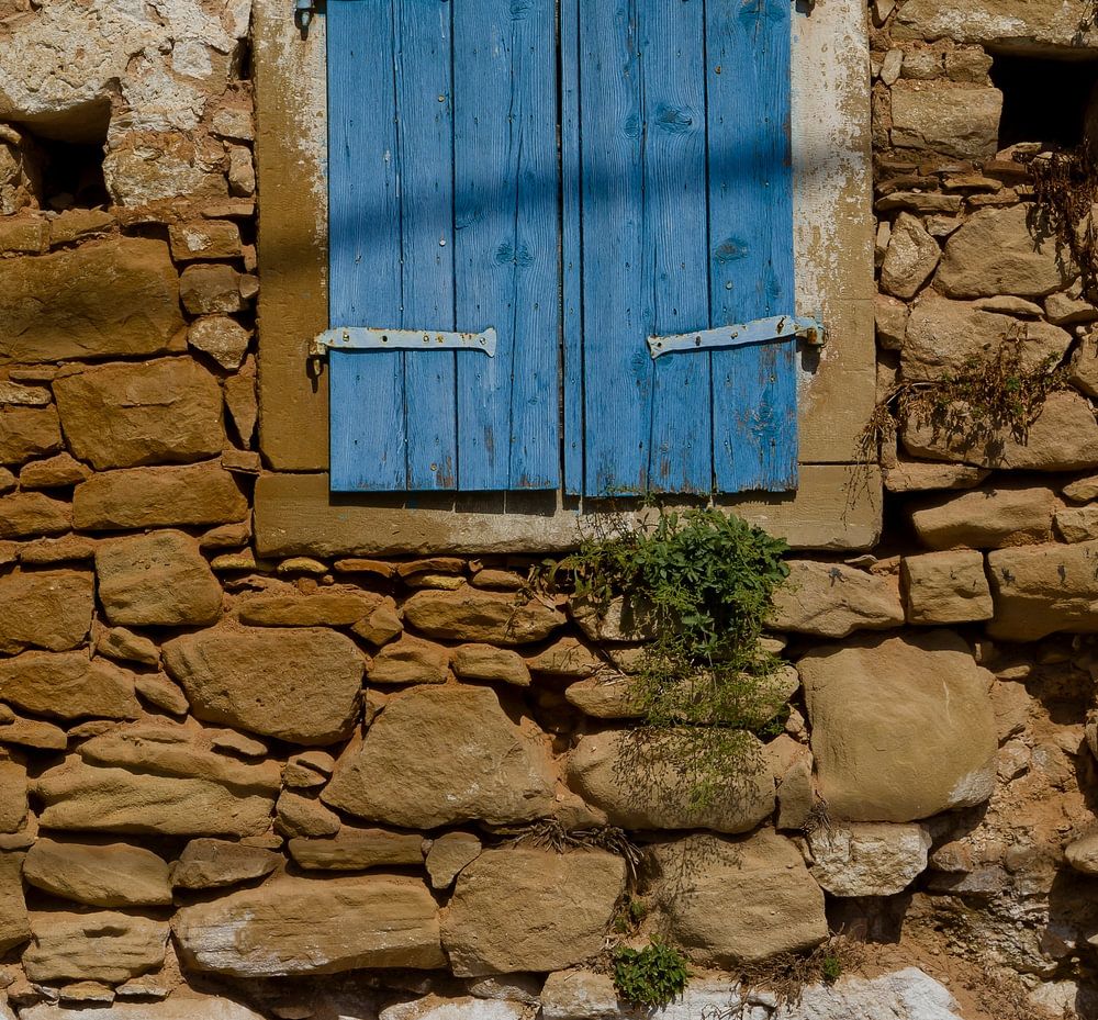 Griechenland, Korfu, Steinmauer, Fensterläden, blau, alt, malerisch,