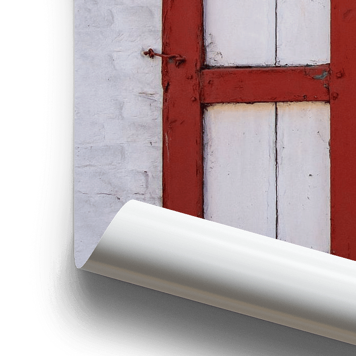Bei einem Spaziergang durch das historische Buchdorf Damme in der Nähe von Brügge, Belgien, stieß ich auf dieses schöne, verfallene Fenster mit rot-weißen Fensterläden.
