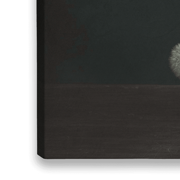 Eine schöne Komposition mit Löwenzahn. Ein antikes Bild durch die Verwendung von Farben, die häufig in Gemälden aus dem goldenen Zeitalter zu sehen sind. Hier wurde Rembrandt-Licht verwendet. Die dunkelgrüne Farbe passt zu vielen modernen Hausstilen. Ein echter Hingucker an Ihrer Wand!