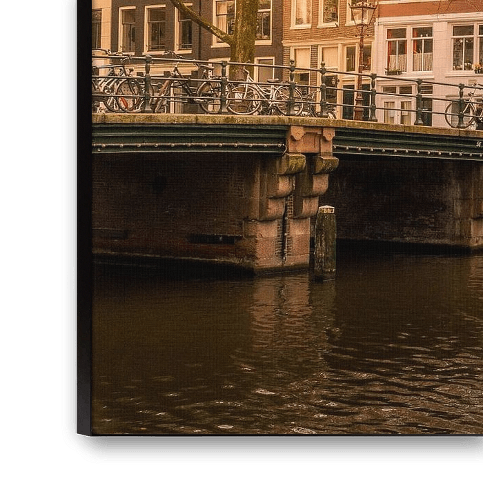Amsterdam, die Hauptstadt der Niederlande und auch bekannt als "Das Venedig des Nordens", ist berühmt für seine alten historischen Häuser entlang der Grachten. Dieses Bild wurde an einem stürmischen und sehr nassen Tag im März aufgenommen. Eine großartige Stadt, die man mit dem Fahrrad, dem bequemsten Verkehrsmittel in dieser geschäftigen Stadt, oder mit dem Boot erkunden sollte. Warum nicht ein kleines Amsterdam an die Wand hängen?