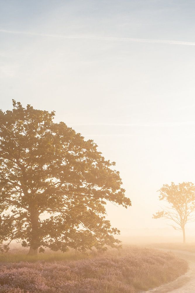 Dieses Bild wurde aufgenommen, als ich zum ersten Mal in der Regte Heide war. Meine ursprüngliche Idee war es, die Grabhügel zu fotografieren, aber mit dem tief hängenden Nebel und der aufgehenden Sonne dahinter interessierte mich mehr die umgebende Natur. Dieses wunderbar beruhigende Foto ist eines meiner Lieblingsfotos des heutigen Tages. Die am Baum entlang aufgehende Sonne und die ganze Szene in einem warmen Morgenglanz verleiht dem Foto einen beruhigenden Charakter.