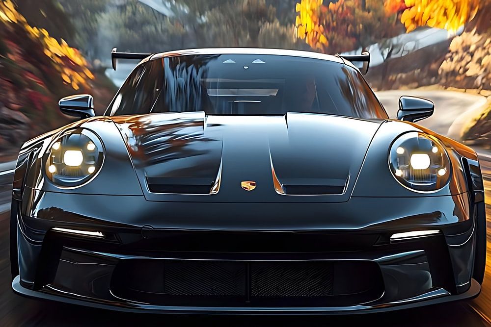Ein schwarzer Porsche 911 GT3 strahlt pure Kraft und Eleganz aus. Die tiefschwarze Lackierung glänzt im Licht und unterstreicht die fließenden Linien und die aerodynamische Form des Sportwagens. Die breiten Radkästen und der markante Heckspoiler verleihen dem Wagen ein aggressives Aussehen, während der Innenraum Luxus und Sportlichkeit vereint. Mit seinem röhrenden Motor und der scharfen, präzisen Lenkung ist der schwarze Porsche 911 GT3 eine perfekte Kombination aus Geschwindigkeit, Stil und Leistung, eine Ikone auf der Straße und auf der Rennstrecke.