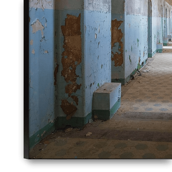 Bestelle das Foto Ein verlassener Korridor in einem Sanatorium von Truus Nijland als Reproduktion auf Leinwand, Alu-Dibond, als Poster, Fototapete oder Acrylglasbild.