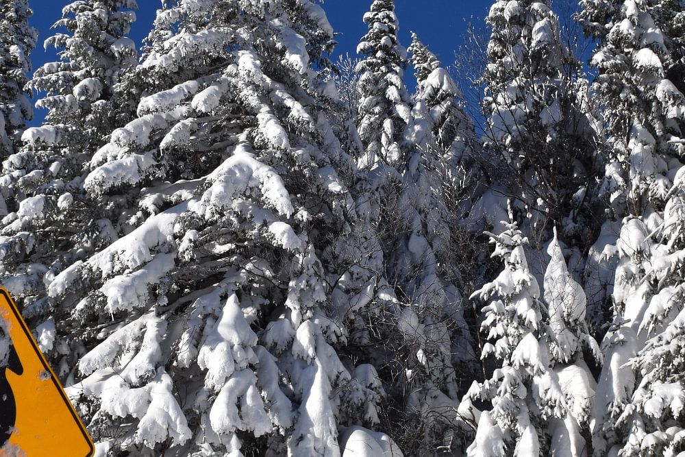 Ein verschneiter Wald nach einem Sturm, Quebec, Kanada