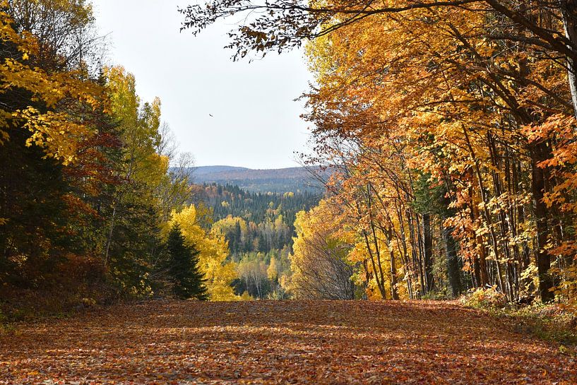 Bestelle das Foto Eine Landstraße im Herbst von Claude Laprise als Reproduktion auf Leinwand, Alu-Dibond, als Poster, Fototapete oder Acrylglasbild.