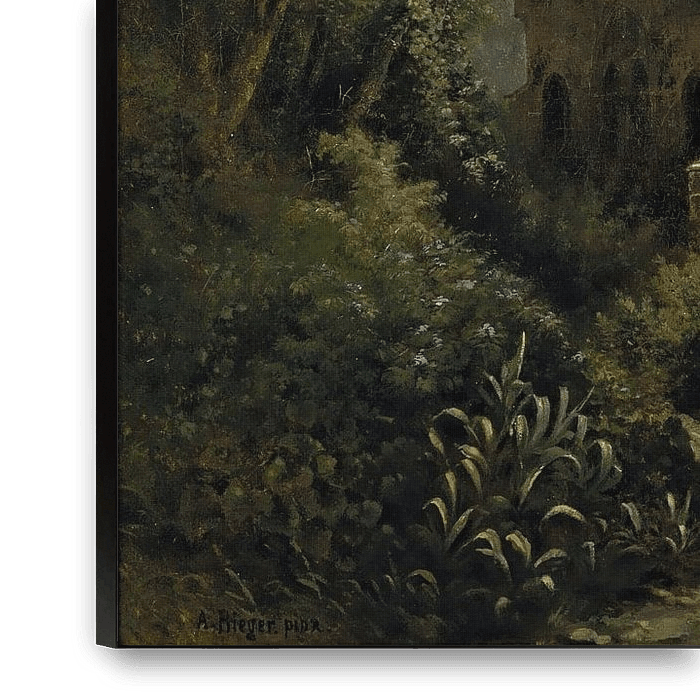 Eine Mondnacht über einer Kapelle und Reitern des deutschen Künstlers Albert Rieger zeigt eine ruhige, mondbeschienene Szene mit einer Gruppe von Reitern, die durch die Landschaft reiten. Im Mittelpunkt des Gemäldes steht eine kleine Kapelle, die auf einer Anhöhe in der Landschaft steht und vom Mondlicht beleuchtet wird. Riegers zarte…