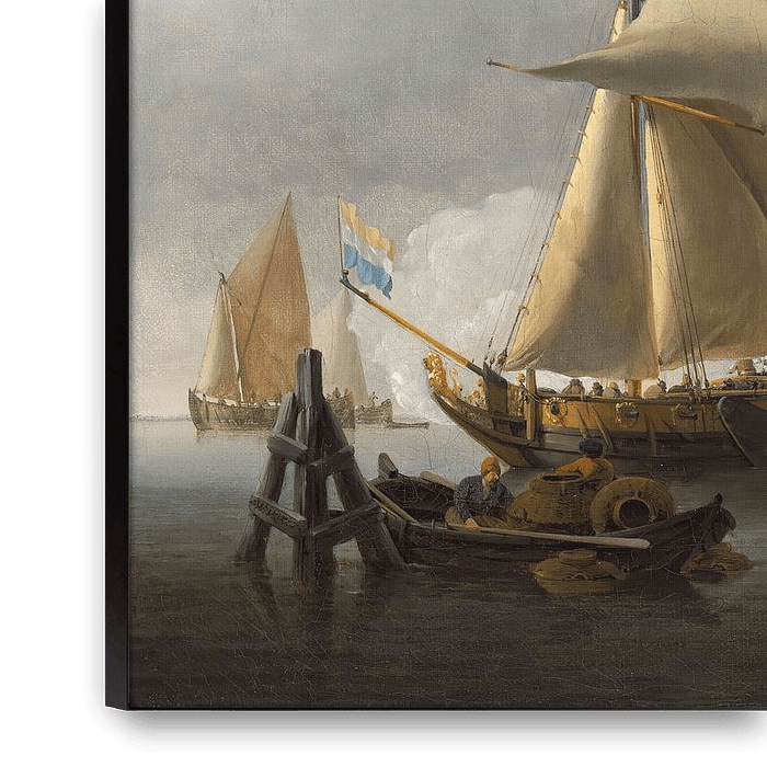 Bestelle Eine Ruhe mit einer Staatsjacht, die einen Salut abfeuert, Willem van de Velde der Jüngere als Reproduktion auf Leinwand, Alu-Dibond, als Poster, Fototapete oder Acrylglasbild.