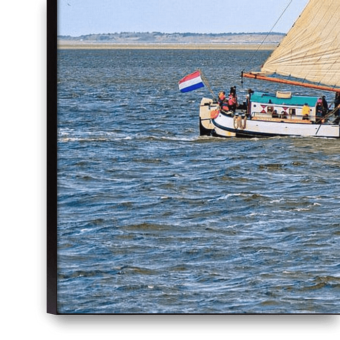 Bestelle dieses Landschafts-Wandbild Eine Tjalk beim Insel Vlieland von Roel Ovinge als Reproduktion auf Leinwand, Alu-Dibond, als Poster, Fototapete oder Acrylglasbild.