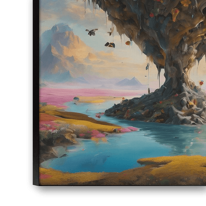 Dieses geheimnisvolle, surrealistische Gemälde entführt Sie in eine Blumenlandschaft, in der die Grenze zwischen Traum und Wirklichkeit verschwimmt. Die leuchtenden Farben und die fließenden Formen der Blumen scheinen fast zum Leben zu erwachen, während die surrealen Elemente ein Gefühl des Staunens und der Faszination hervorrufen. Bei jeder Betrachtung entdeckt man neue Details, die die Fantasie anregen und den Betrachter tiefer in das Bild hineinziehen. Dieses Kunstwerk ist perfekt für alle, die das Unerwartete, das Mystische und die Magie des Surrealismus lieben. Verwandeln Sie Ihr Interieur mit diesem einzigartigen Meisterwerk, das für Gesprächsstoff sorgt und eine Quelle der Inspiration ist.
