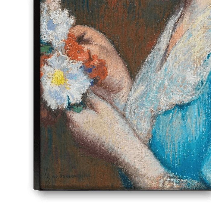 Bestelle diese Malerei Eine junge Frau mit einem Blumenstrauß von Antonije Lazovic als Reproduktion auf Leinwand, Alu-Dibond, als Poster, Fototapete oder Acrylglasbild.