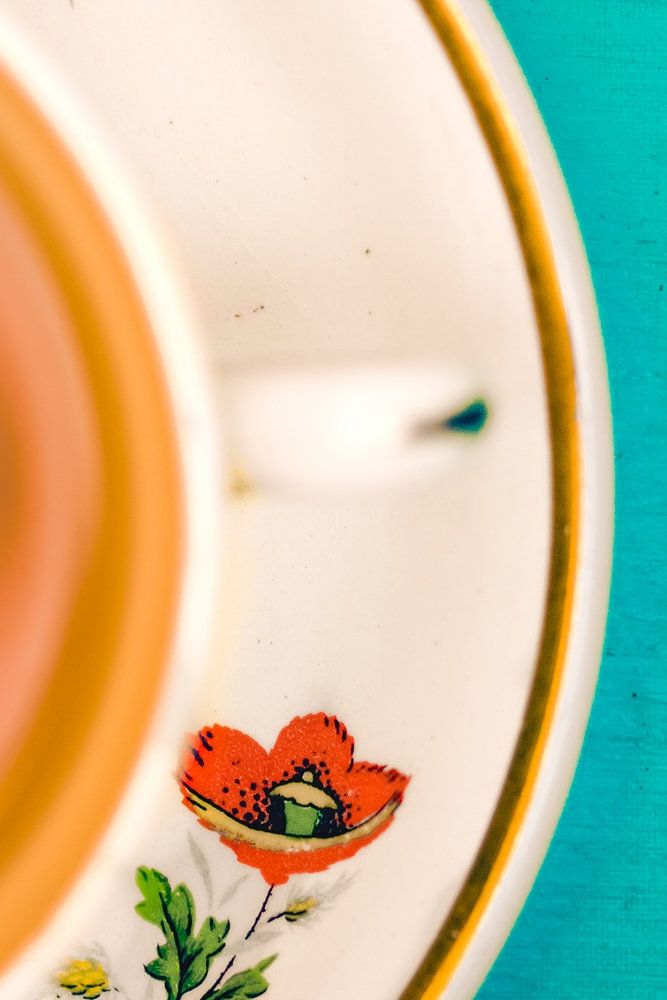 Ein altes Teeservice, das ich einmal auf einem französischen Flohmarkt gekauft habe. Nicht, weil ich so ein Teeliebhaber bin, ich trinke lieber Kaffee, sondern weil es meine Lieblingsblumen zeigt: Mohnblumen. Dann dient es einfach nur für niedliche Bilder von Teetassen.
