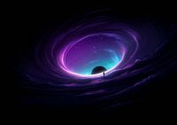 Bestelle dieses abstrakte Wandbild Einsame Figur am Rande eines violetten kosmischen Wirbels von BINEDITS als Kunstdruck auf Leinwand, Alu-Dibond, als Poster, Fototapete oder Acrylglasbild.