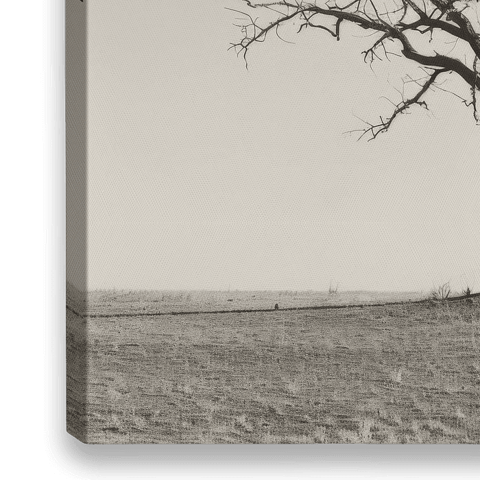 Dieses beeindruckende Kunstwerk zeigt einen einsamen Baum, der majestätisch in der Weite der Prärie steht. Die klaren Linien des kargen Baumes heben sich kontrastreich gegen den endlosen, blauen Himmel ab und vermitteln ein Gefühl von Ruhe und Gelassenheit. Der Künstler hat es meisterhaft geschafft, die stille Schönheit der Natur…