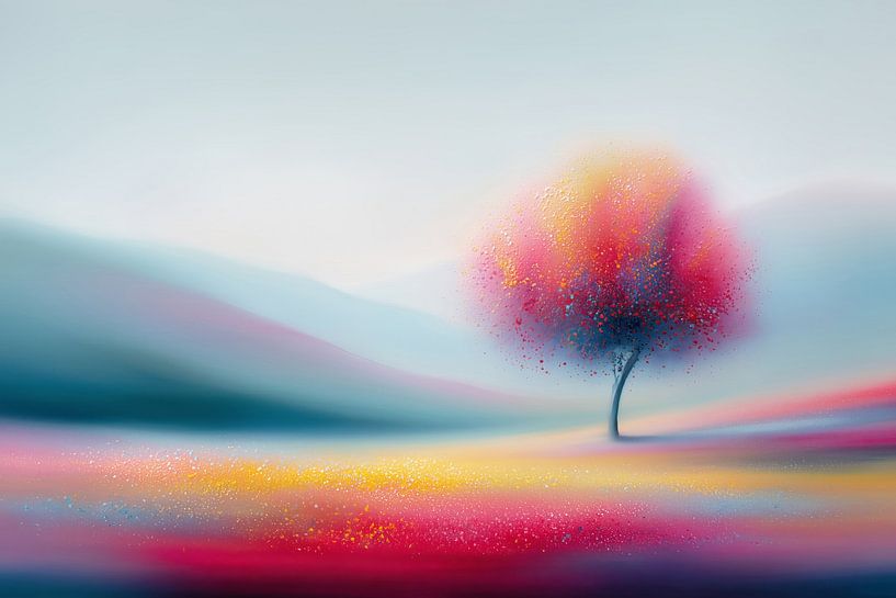 Bestelle dieses abstrakte Wandbild Einsamer Baum von ARTemberaubend als Reproduktion auf Leinwand, Alu-Dibond, als Poster, Fototapete oder Acrylglasbild.