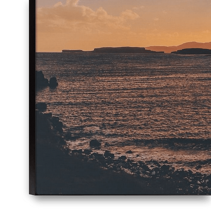Ihre gewählte Kunst auf Leinwand, gespannt in einem Aluminiumrahmen. Schnell und einfach austauschbar für eine frische Ausstrahlung und ganz nach Ihren Wünschen.