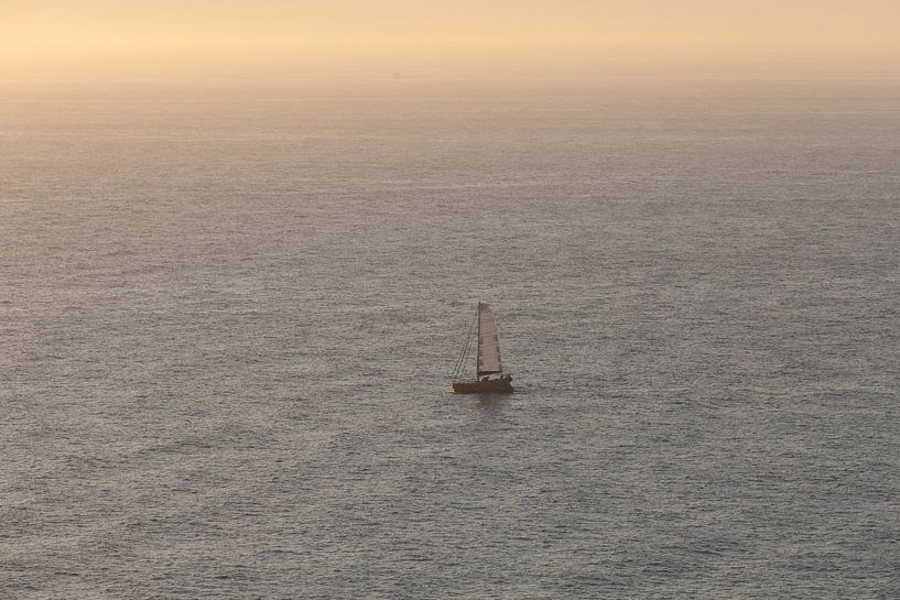 Bestelle das Foto Einsames Segelboot auf dem Atlantik von Peter Haastrecht, van als Reproduktion auf Leinwand, Alu-Dibond, als Poster, Fototapete oder Acrylglasbild.