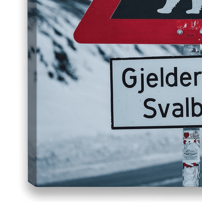 Bestelle das Foto Eisbär-Straßenschild in Longyearbyen von Martijn Smeets als Reproduktion auf Leinwand, Alu-Dibond, als Poster, Fototapete oder Acrylglasbild.