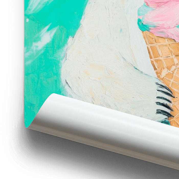 Bestelle diese Malerei Eisbär mit Eiscreme Cone von Poster Art Shop als Reproduktion auf Leinwand, Alu-Dibond, als Poster, Fototapete oder Acrylglasbild.