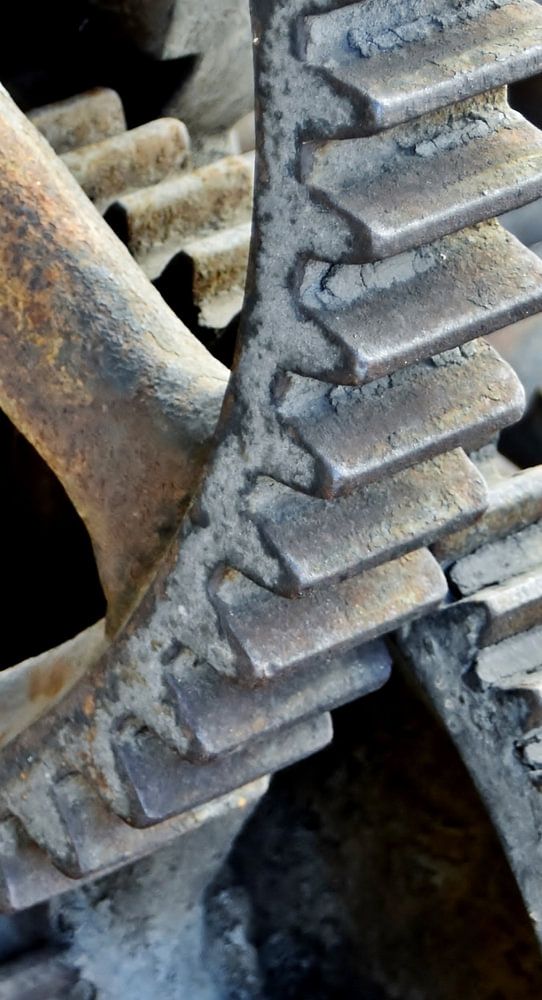 Nahaufnahme mit Eisenzahnrädern einer Alten Maschine