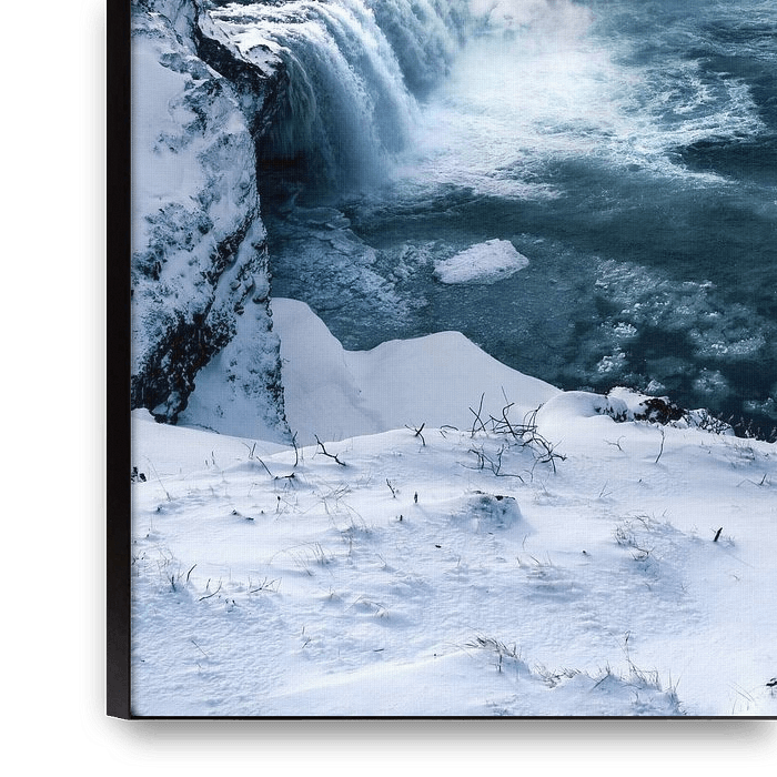 Bestelle dieses Landschafts-Wandbild Eisiger Wasserfall von Joris Machholz als Reproduktion auf Leinwand, Alu-Dibond, als Poster, Fototapete oder Acrylglasbild.