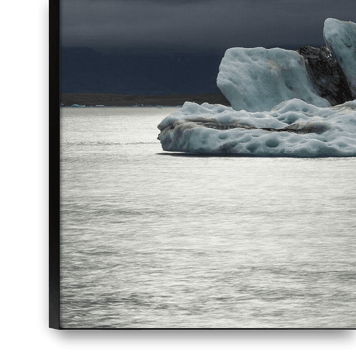 Eisschollen und dunkle Wolken über den See Jokulsarlon Gletscher-Lagune im Vatnajökull Nationalpark, Island.