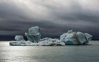 Eisschollen und dunkle Wolken über den See Jokulsarlon Gletscher-Lagune im Vatnajökull Nationalpark, Island.