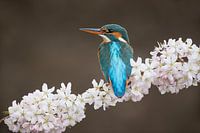 Eisvogel auf Kirschblüte im Wurf fotografiert