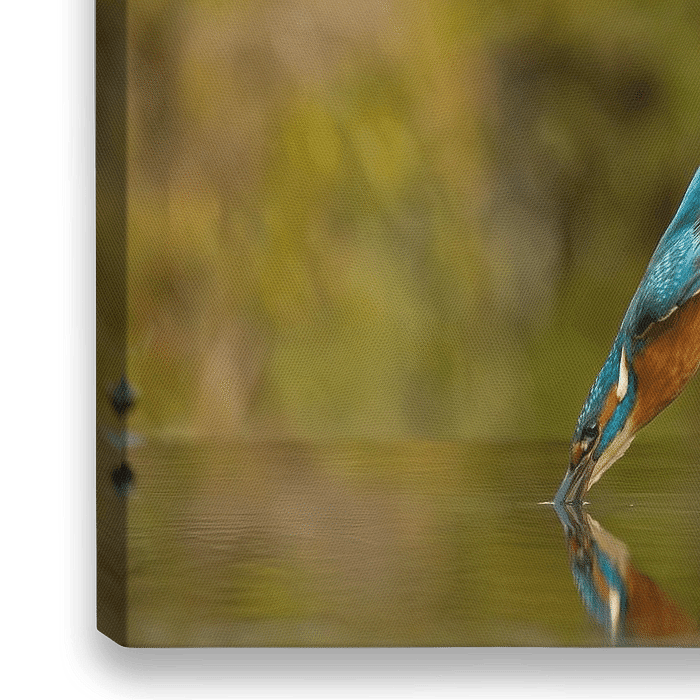 Bestelle dieses Vögel Wandbild Eisvogel im Flug. von Menno Schaefer als Reproduktion auf Leinwand, Alu-Dibond, als Poster, Fototapete, ArtFrame oder Acrylglasbild, maßgefertigt in höchster Qualität.