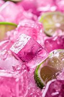 Bestelle das Foto Eiswürfel mit Limette – Erfrischend rosa von Poster Art Shop als Reproduktion auf Leinwand, Alu-Dibond, als Poster, Fototapete oder Acrylglasbild.