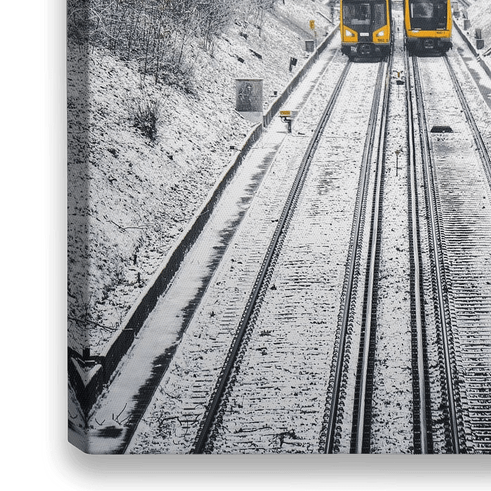 Aufnahme zweier Bahnen der Berliner Verkehrsbetriebe im eisig kalten Berlin.