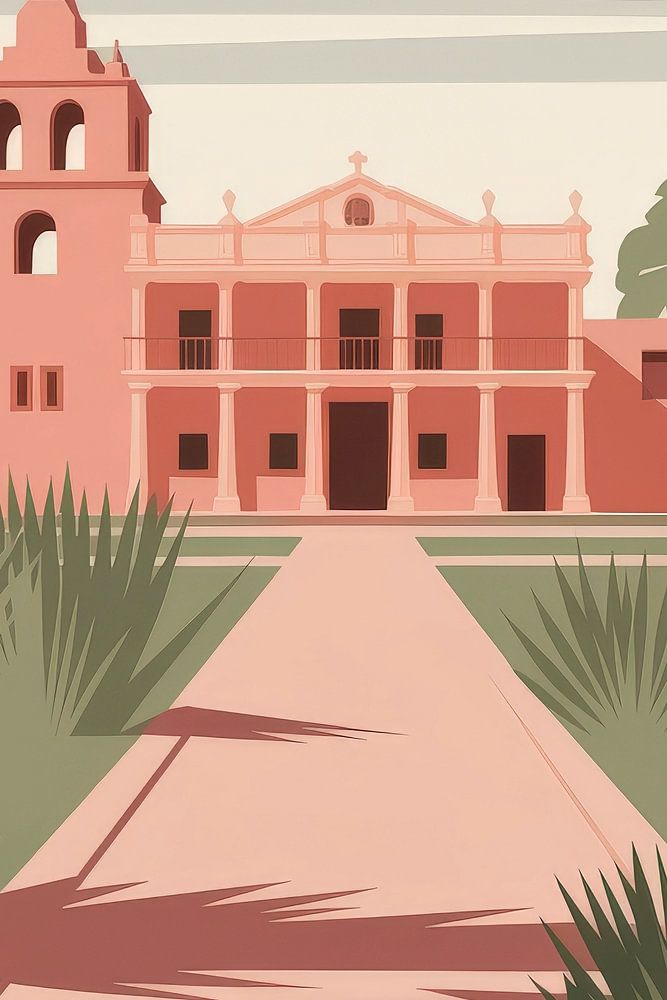 Mit sanften Erdtönen und klaren Linien fängt das Bild die charmante Architektur von El Paso ein, umgeben von der Natur der Wüste. Die harmonische Verbindung von Geschichte und Landschaft verleiht jedem Raum eine nostalgische Atmosphäre. Ideal für das Wohnzimmer, wo es Gespräche anregt und Erinnerungen weckt.