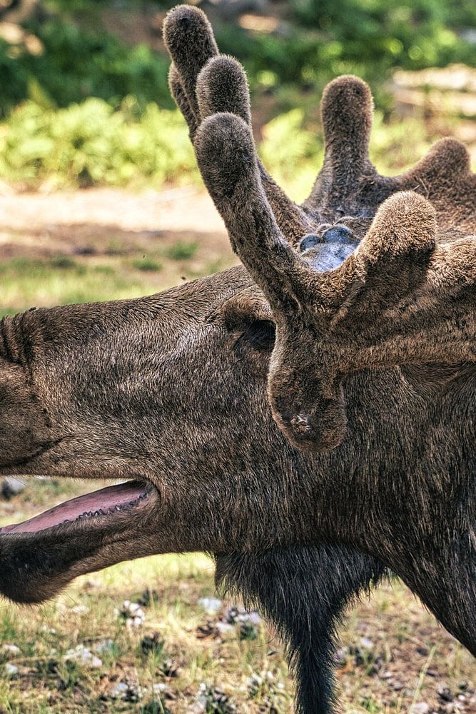 Elch auf einer grünen Wiese in Skandinavien. König der Wälder in Schweden. Größtes Säugetier in Europa. Tierfoto
