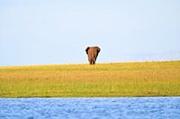 Bestelle das Foto Elefant auf gelber Wiese am Wasser von Robert Styppa als Kunstdruck auf Leinwand, Alu-Dibond, als Poster, Fototapete oder Acrylglasbild.
