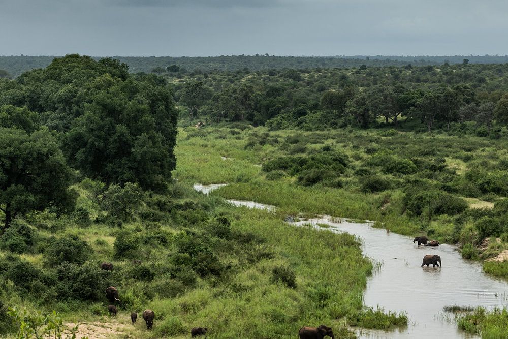 Elefanten im Fluss des Klaserie-Naturreservats, Südafrika