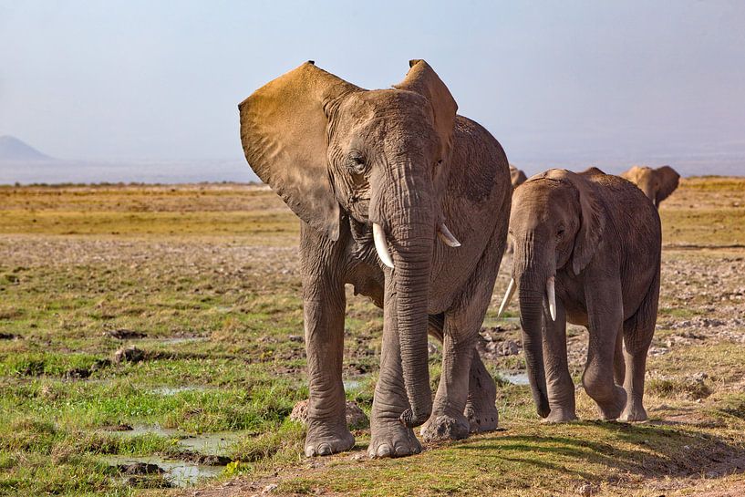 Bestelle das Foto Elefantenherde von Peter Michel als Reproduktion auf Leinwand, Alu-Dibond, als Poster, Fototapete oder Acrylglasbild.